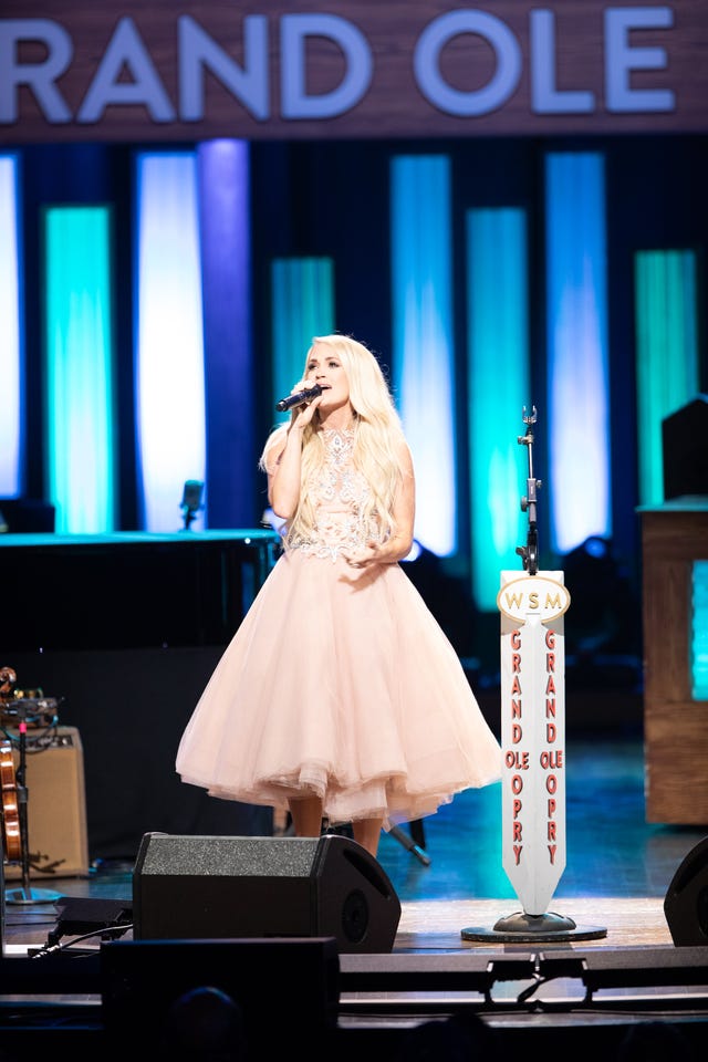 The "Cry Pretty" singer looked fabulous in a pastel pink tulle dress as she hit the stage at the Grand Ole Opry House in Nashville, Tennessee, on June 5.