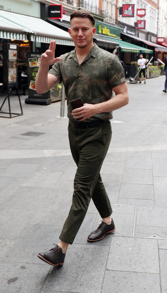 Is he prepping for a Hail, Caesar! sequel? Tatum gave off major Burt Gurney vibes (his character in the 2016 film, natch) when he left Capital Radio Studios in London, England, on June 4 in an olive green outfit paired with black cap-toe Timberland oxfords.