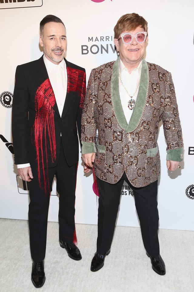 Furnish was right by his husband's side as the pop icon hosted his annual Oscars soiree, the Elton John AIDS Foundation Academy Awards Viewing Party, with IMDb LIVE, in Los Angeles on the night of the 2019 awards show.