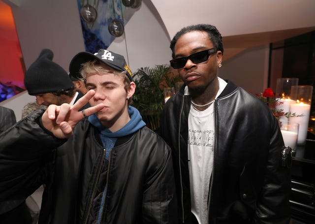 The Kid LAROI and Gunna attend the Darren Dzienciol Oscar Party 2024 presented by Blush on March 8 in Los Angeles, California.