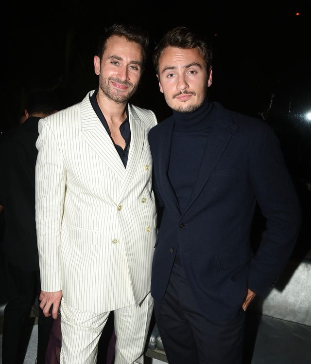 The 1OAK co-founder and the producer pose at Dzienciol's annual Oscar Party presented by Utopia at the Sheats-Goldstein estate in Los Angeles, California to benefit Global Empowerment Mission LA Wildfire Relief, powered by Mood Casino and Vivienne Sabo Paris, where guests sipped on El Cristiano.