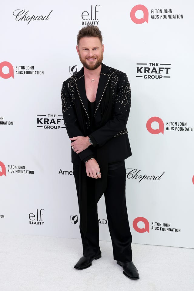 On March 2, the Queer Eye alum attends the Elton John AIDS Foundation's Academy Awards Viewing Party in West Hollywood, California in a John Richmond blazer.