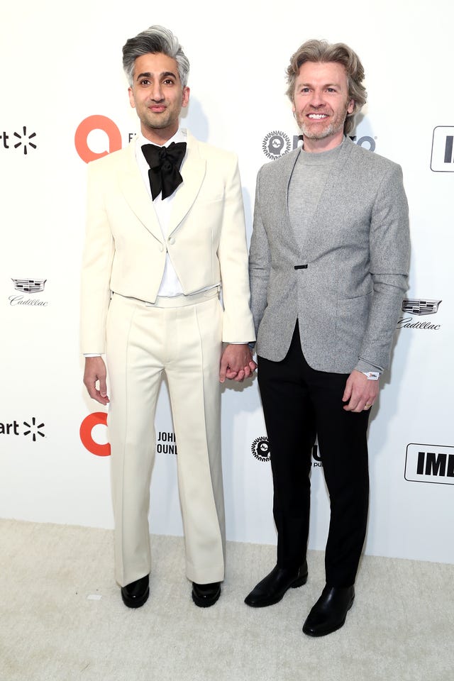The dapperly dressed Queer Eye star and his husband posed on the red carpet for the Elton John AIDS Foundation’s 2020 Academy Awards viewing party. The couple originally met online.