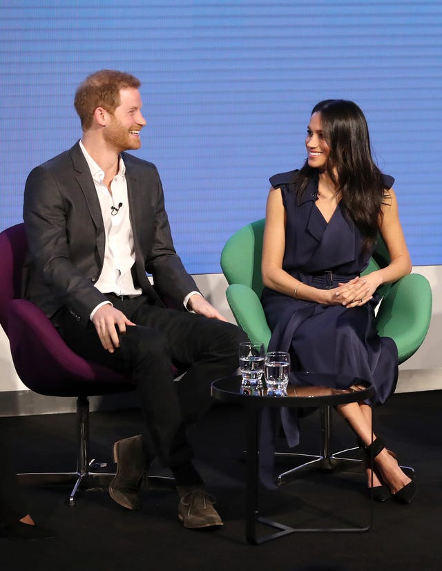 Is there anything sweeter than the way these two smile at each other? We think not! Harry and Meghan's chemistry was palpable as they sat onstage at the first annual Royal Foundation Forum in London on Feb. 28, 2018 which was also attended by Prince William and Kate Middleton.