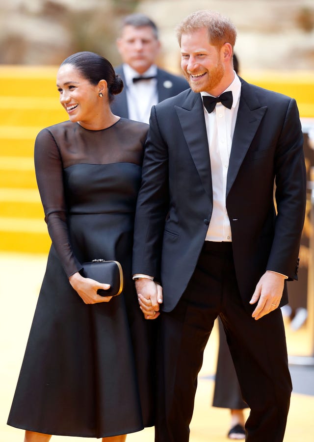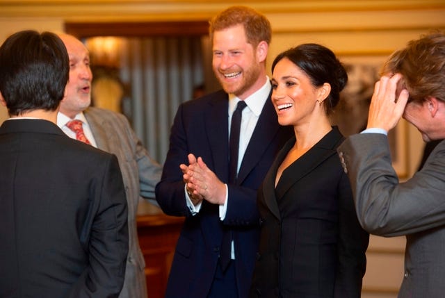 The couple listens to Lagos State Governor Babajide Sanwo-Olu give a speech at the State Governor House in Lagos on May 12, 2024 as they visit Nigeria as part of the celebrations for the Invictus Games anniversary.