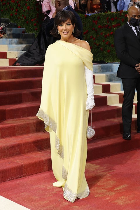 Kris Jenner wore a beautiful yellow dress and white gloves while attending the 2022 Met Gala Celebrating in America: An Anthology of Fashion at the Metropolitan Museum of Art on May 2, 2022 in New York City.