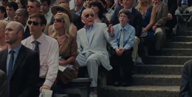 Towards the end of the film, Lee pops up as a FedEx delivery guy with a package for "Tony Stank."
