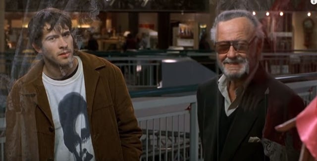 Lee made this non-Marvel cameo as himself, giving Brodie relationship advice based on an issue of Spiderman he wrote as they stand outside a lingerie shop in the mall. Once Brodie realizes who he is speaking with, Lee gets bombarded with comic book questions.