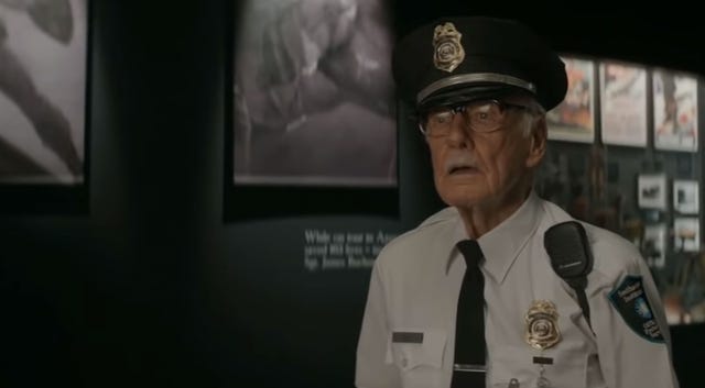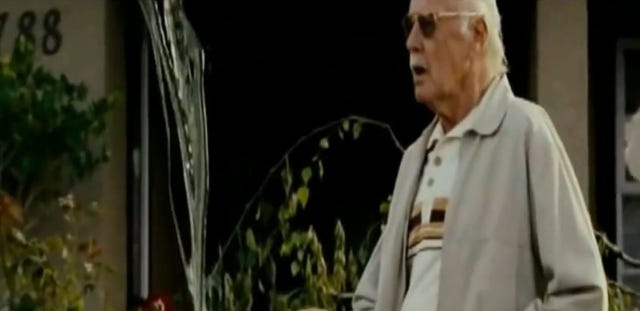 In one of his more out-of-this-world appearances, we see Lee as an astronaut telling three Watchers a story about his time on Earth as a FedEx guy, which also seemingly confirmed a long-running fan theory that all of Lee's cameos are connected.