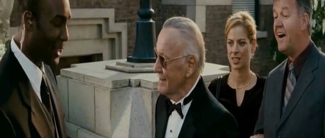 Lee plays himself once again, and he gets turned away at the door of Reed Richard and Susan Storm's wedding by the bouncer because he wasn't on the guest list.