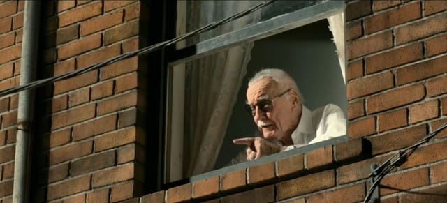Let's be honest -- this is barely a cameo. Nonetheless, we see an image of Lee on the side of a building in the Deadpool sequel, but blink and you will surely miss it. This was one of the rare times Lee didn't make a live (or animated, to be fair) appearance in a Marvel flick.