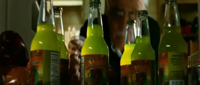 Playing a man from Milwaukee, Lee reaches into a fridge for a soft drink that's been tainted with Bruce Banner's blood.