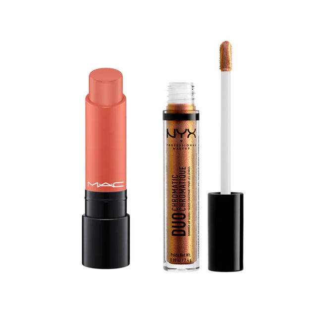 MAC Liptensity Lipstick in Doe $21, NYX Duo Chromatic Lip Gloss in Fairplay $8