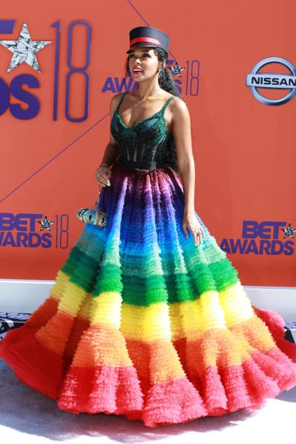 Janelle Monae made quite the statement at the 2018 BET Awards in Los Angeles on June 24. The actress and singer stunned in a Nicolas Jebran rainbow dress in celebration of Pride Month. Monae opened up about her sexuality in an interview with Ebro Darden in April stating, "I just feel like my sexuality, my women's desires are one with God, it's all one, it’s all a beautiful thing, and I just hope that women feel more free, feel more empowered. I do."
