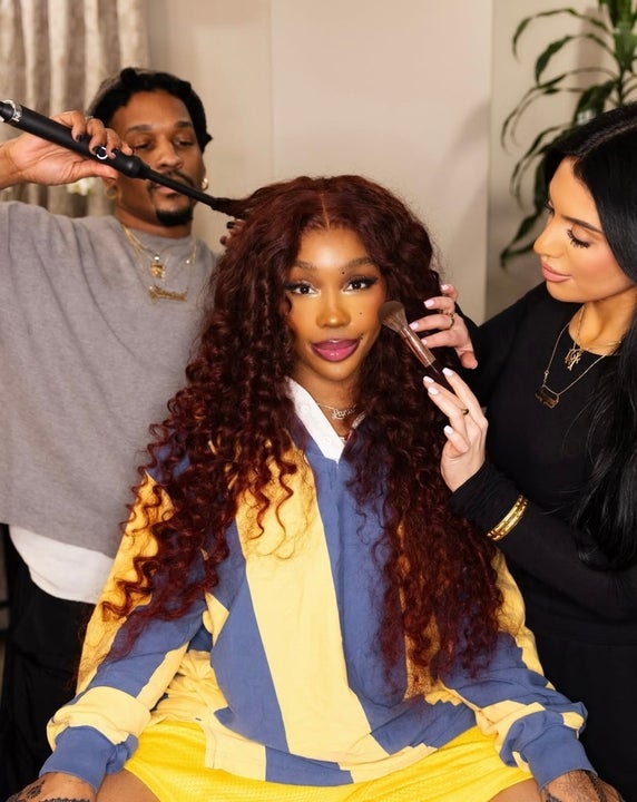 The singer gets glam with celebrity hairstylist Devante Turnbull -- who used ghd products to create her look -- before performing at the Super Bowl LIX Halftime show in New Orleans, Louisiana on Feb. 9.