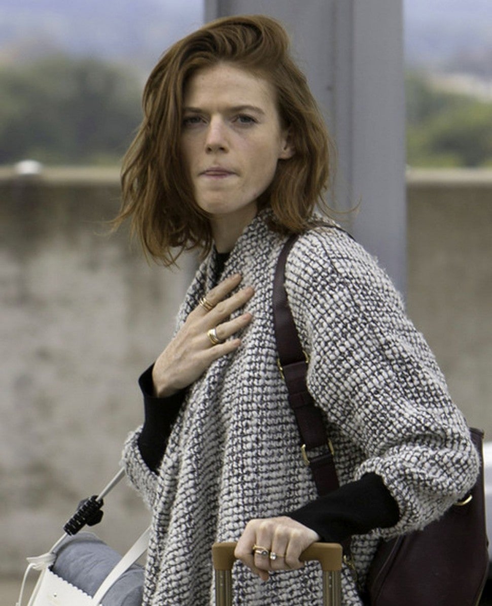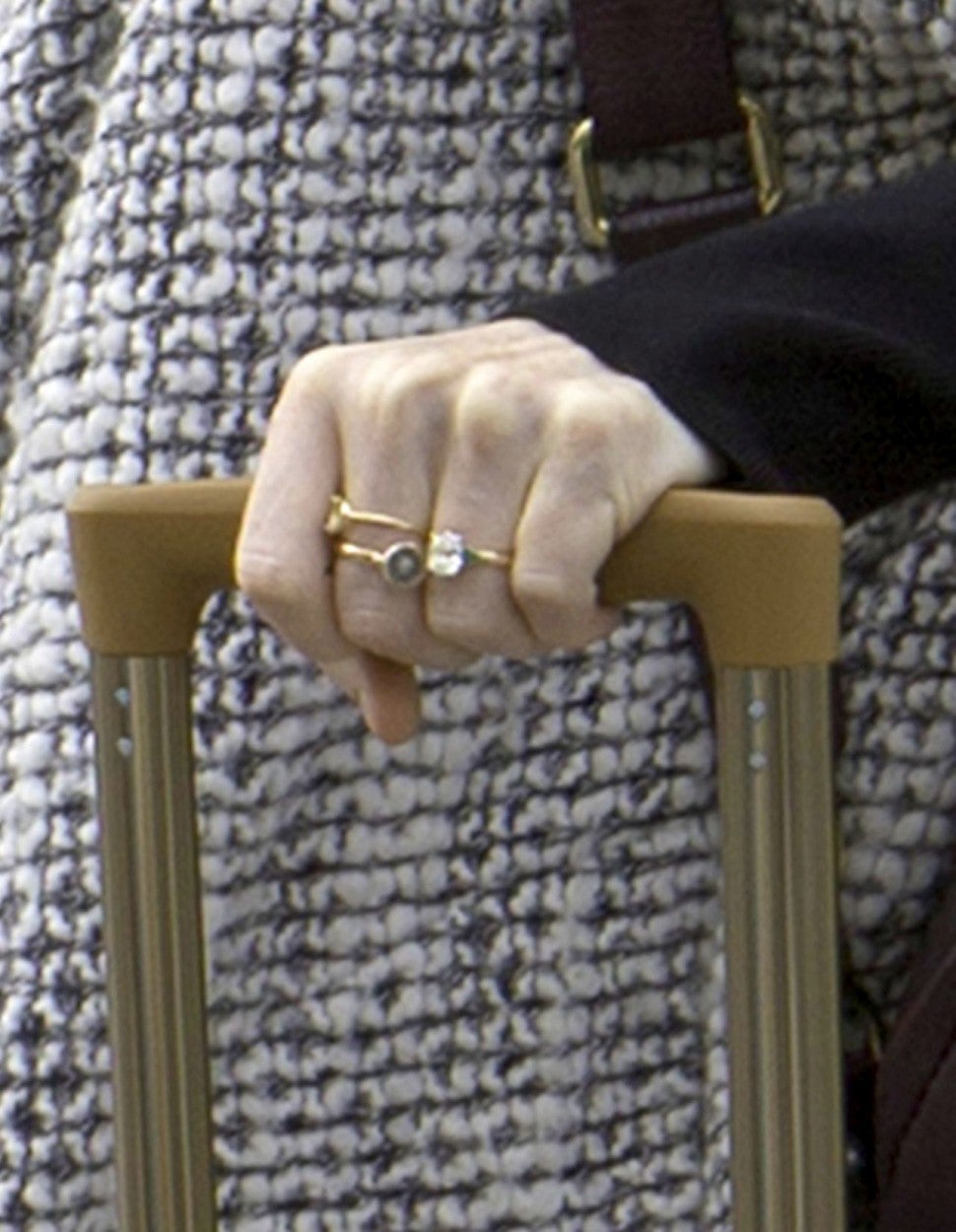 Photographers caught Leslie at Heathrow Airport in London, England, on Sunday, rocking a cozy tweed jacket and brown crossbody bag. But all eyes were on her new accessory, an oval-shaped diamond ring set on a yellow-gold band.