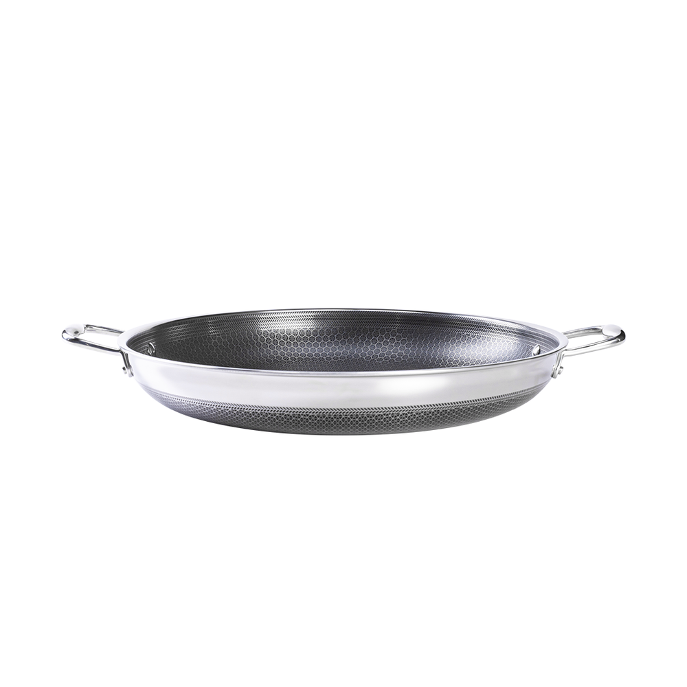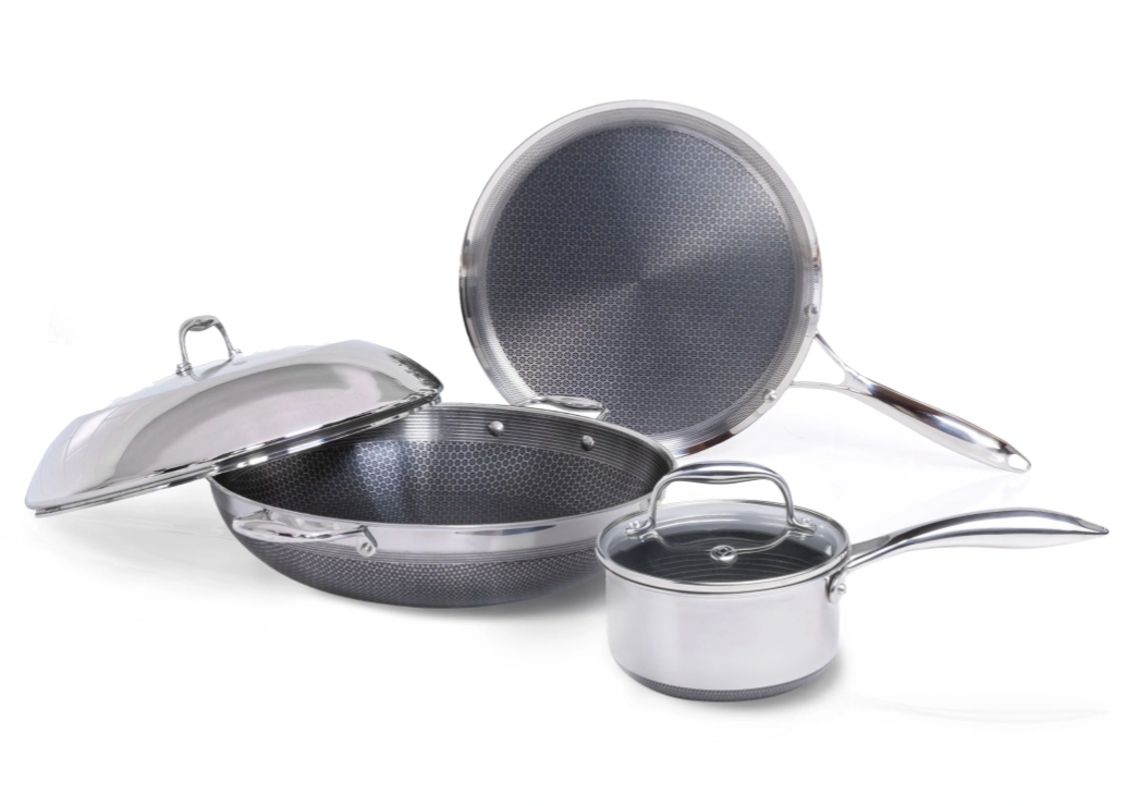 So what is it about HexClad that's so special? Typically, essential cookware comes in two forms: stainless steel or nonstick. But with HexClad, you can have both. Each of the brand's highly-acclaimed pans is made using laser-etching technology to create a hexagon design on the surface and tri-ply construction to give you a perfect sauté and sear without the messy bits.
