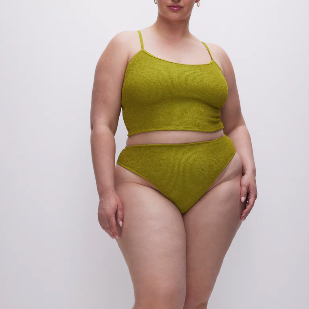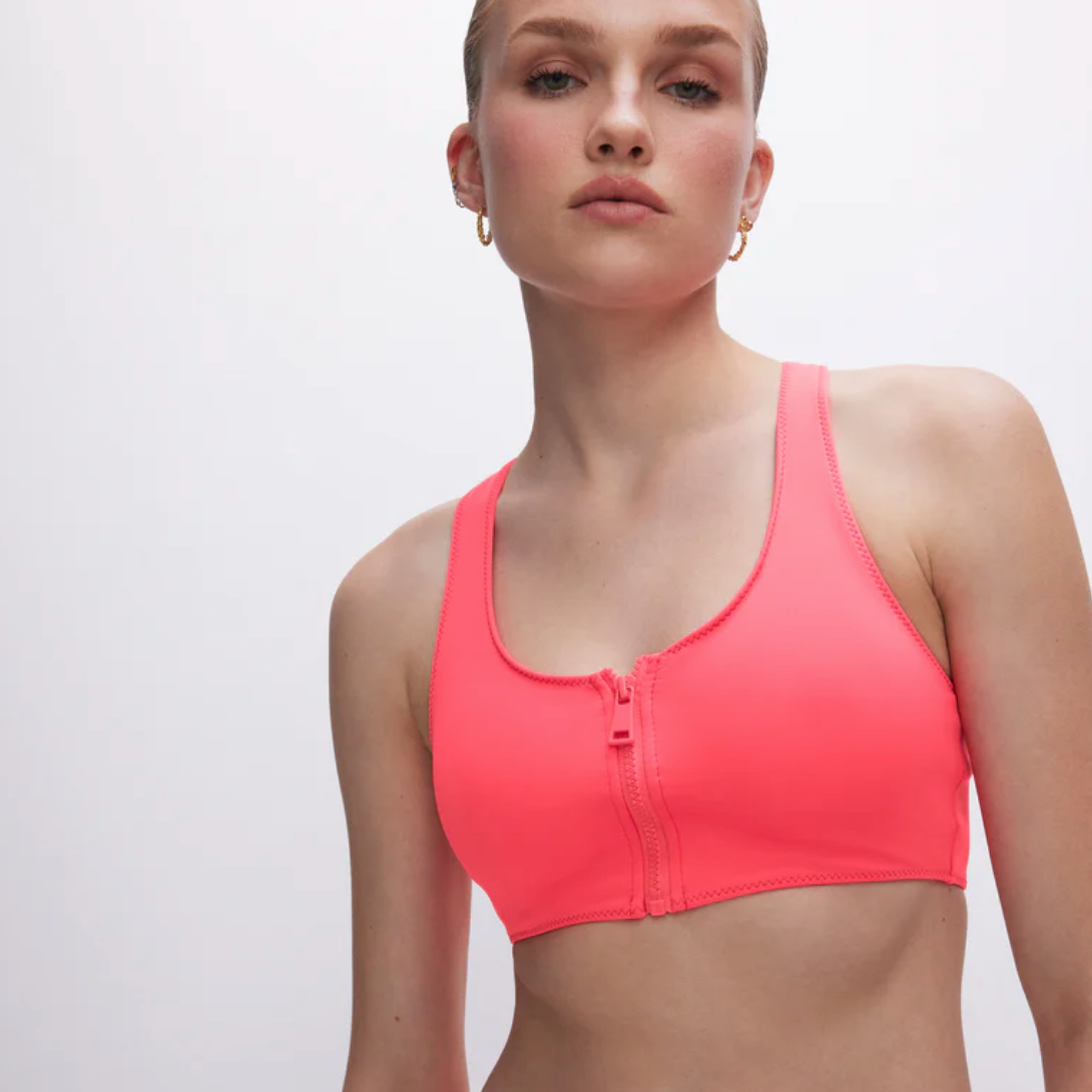 Good American's scoop neck bikini top now comes in smoothing and shaping compression fabric that molds to your body.