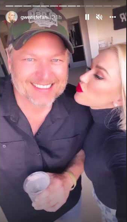 In one photo, a beaming Stefani gives her handsome hubby a sweet peck on the cheek.