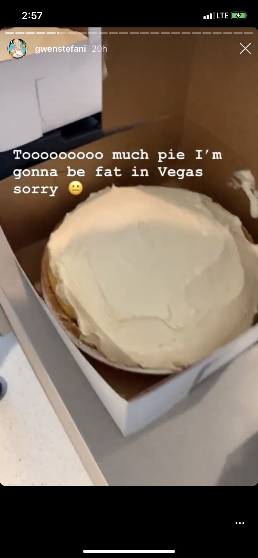 Stefani also posted clips of herself receiving multiple cakes and pies, even joking that they'd negatively impact her Las Vegas residency. "Tooooooooo much pie I'm gonna be fat in Vegas sorry," she quipped.