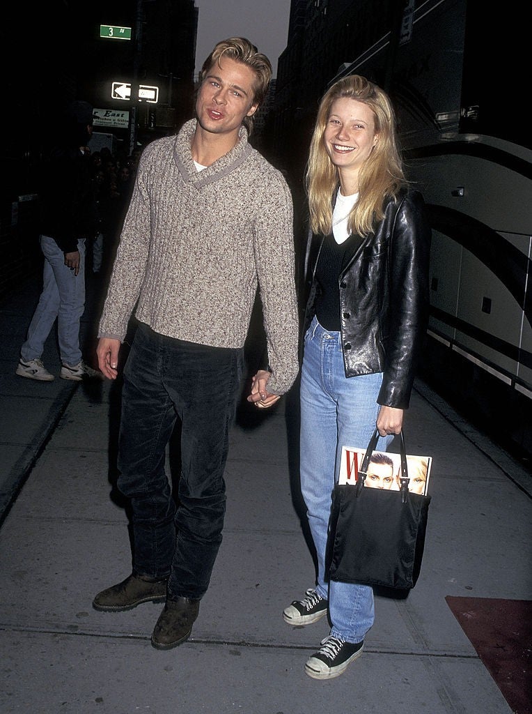Gwyneth Paltrow is taking a trip down memory lane with Vogue's "Life in Looks." The Goop founder looked back on her most iconic outfits and her equally iconic relationship with Brad Pitt. Paltrow reflected on their very '90s outfits while looking at a 1996 photo of her and her former fiancé. The duo is pictured hand-in-hand, with a young Paltrow wearing the uniform of the decade: jeans and a leather jacket.