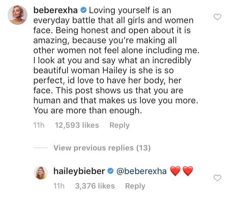 "This is beautiful hun," Bieber, 24, wrote.