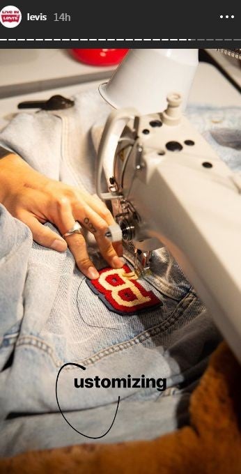 The 21-year-old model stepped out to a party for the opening of a new Levi's store in Times Square in New York City on Thursday, where she proudly sported a jean jacket emblazoned with "Bieber" on the back.