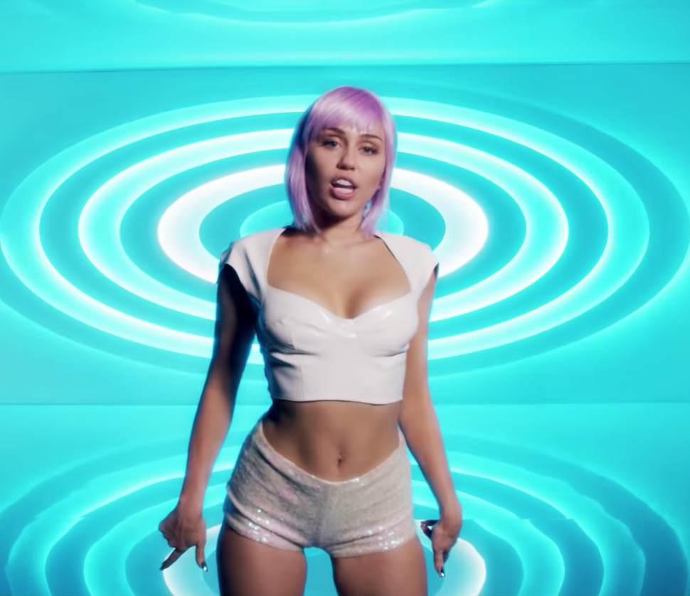 Channel your inner pop star by dressing up as Miley Cyrus' Black Mirror alter ego, Ashley O. Pair a cropped white top, metallic shorts and the essential lavender-colored bob wig.