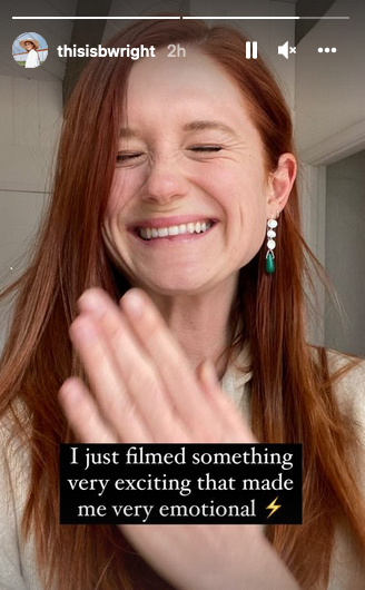 Wright posted a photo of herself looking very excited, captioning the snap, "I just filmed something very exciting that made me very emotional," adding a lightning bolt.