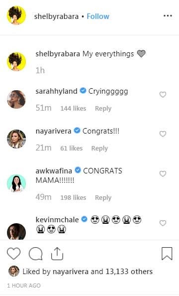 Sarah Hyland, Naya Rivera, Ally Maki, Ken Jeong, Henry Golding and Awkwafina were among the many celebs who replied to the new mom's post with messages of love, support and congrats.