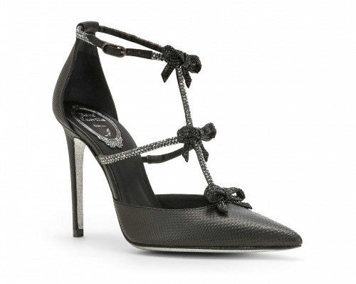 The expecting mother donned a hot pink Philosophy mini dress with a cape and black embroidered collar. She paired the sweet look with black heels with rhinestone bows by René Caovilla, worth $1,329. She pulled her hair back in a simple bun and accessorized with pearl earrings.
