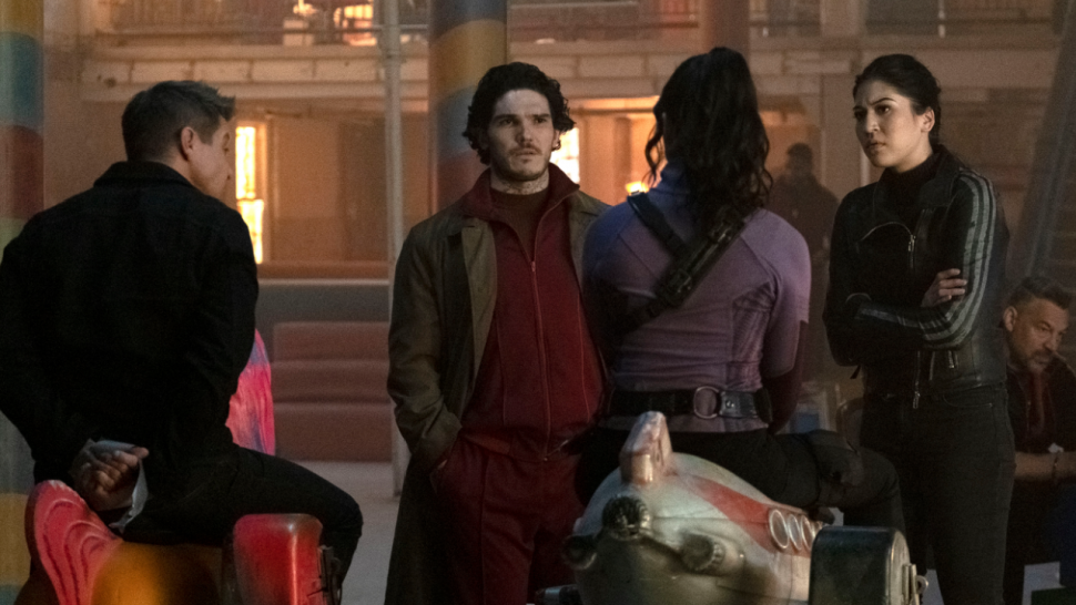 The Irish actor's first appearance onscreen in Disney+'s Hawkeye series came as the Tracksuit Mafia, a group of boisterous gangster "bros," chased Kate out of an underground auction turned robbery. But in the ensuing episodes, it's become clear that Kazi and Maya hold themselves a bit separate from the Tracksuits, though they may have certain goals -- and sinister bosses -- in common.