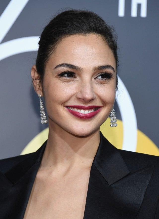 The actress looked like a real-life Wonder Woman on the red carpet, accessorizing her Tom Ford silk tulle column dress and tuxedo jacket with chandelier earrings by Tiffany & Co. and a punchy berry lip.