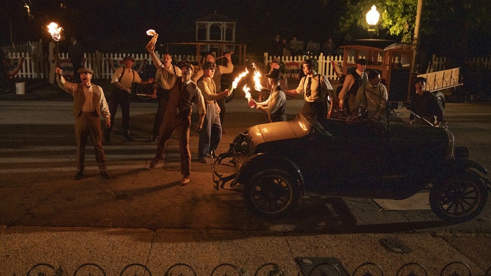 And while it’s easy to depict the violence and bloodshed suffered by the Black residents of the Greenwood District, Watson says the series wanted to go beyond that. “Tulsa 1921 was a huge talking point, and the most important elements we wanted to show were that the Black community was thriving, also that they didn’t just flee,” he says. “Many of them stood and fought back. It was important to highlight this cinematically.”