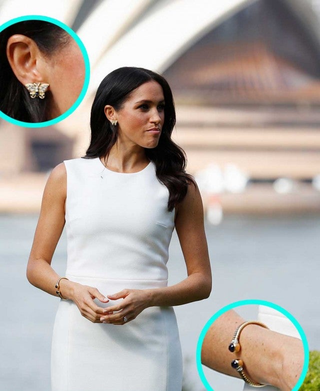 She paired her cream Karen Gee dress with gorgeous butterfly earrings and a beautifully understated gold bracelet that once belonged to Princess Diana herself.