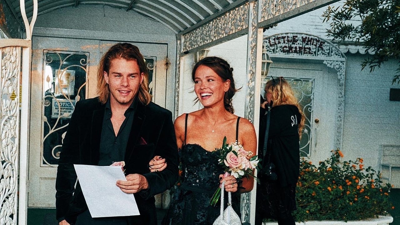 The actors, who both starred in the Netflix series, The Order, recently revealed they eloped in Las Vegas on Oct. 31, 2021, a year after their Gilmore Girls-inspired engagement.