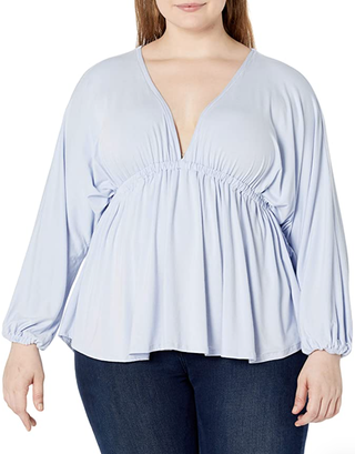 Shoppers love the "Halogen Blue" color of this empire-waist top.