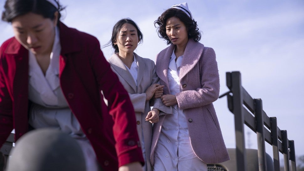 At its core, the episode is a flashback to life in 1950s Korea, which is in the throes of the war, where Ji-Ah is battling her own demons before crossing paths with Atticus on the front lines. But because it’s such a “smart show,” Chung said it is really about so much more: “We’re talking about a mother-daughter relationship, we’re talking about rape survivors, we’re talking about how monstrous people can be during a time of war.”