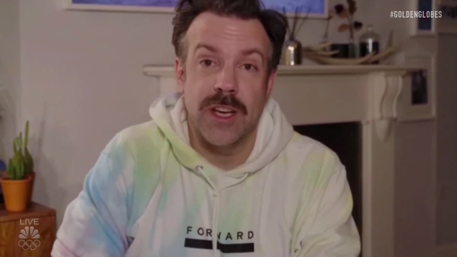 One such example is Jason Sudeikis' rainbow tie-dye sweatshirt from his sister's fitness company, Foward Space, which proved that tie-dye is a must for any occasion -- including Hollywood's most exciting nights. And since the brand's limited-edition sweatshirt is available to pre-order, you can recreate Sudeikis' Golden Globes look.