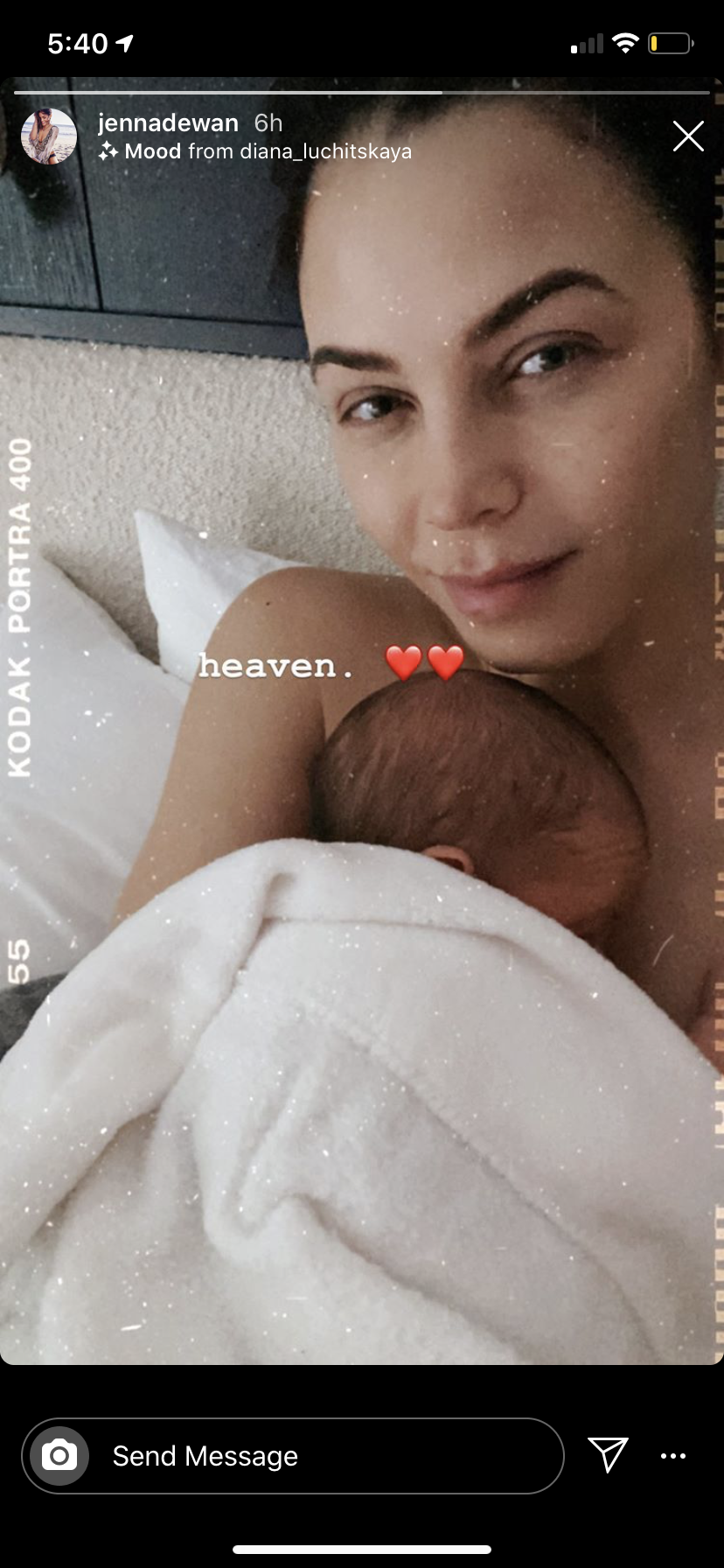 The Flirty Dancing host took to her Instagram Story on Friday to share a dreamy make-up free snap of herself cuddled up with her baby boy, Callum. Dewan had a clear new mom glow in the pic, after welcoming Callum with fiance Steve Kazee on March 6.