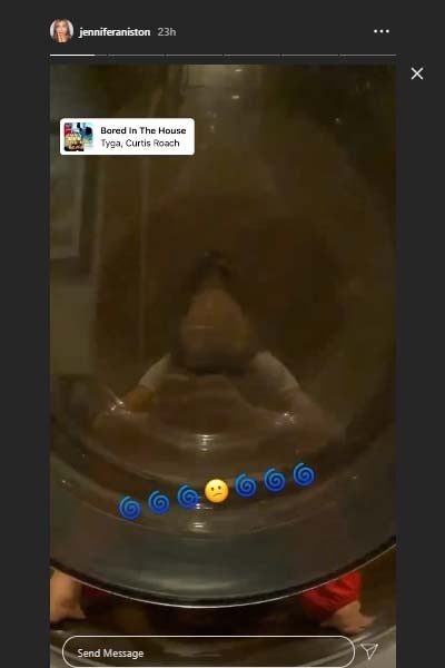In addition to throwback pics and videos of her clothes getting washed, Aniston has taken to posting cartoons about quarantining, as well as sharing videos of her dog.