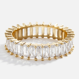 BaubleBar's best-selling Mini Alidia Cubic Zirconia Ring is a classic stacking ring that everyone needs in their accessory repertoire. Featuring extra sparkly baguette stones and gold hardware, it's a wear-everywhere band.