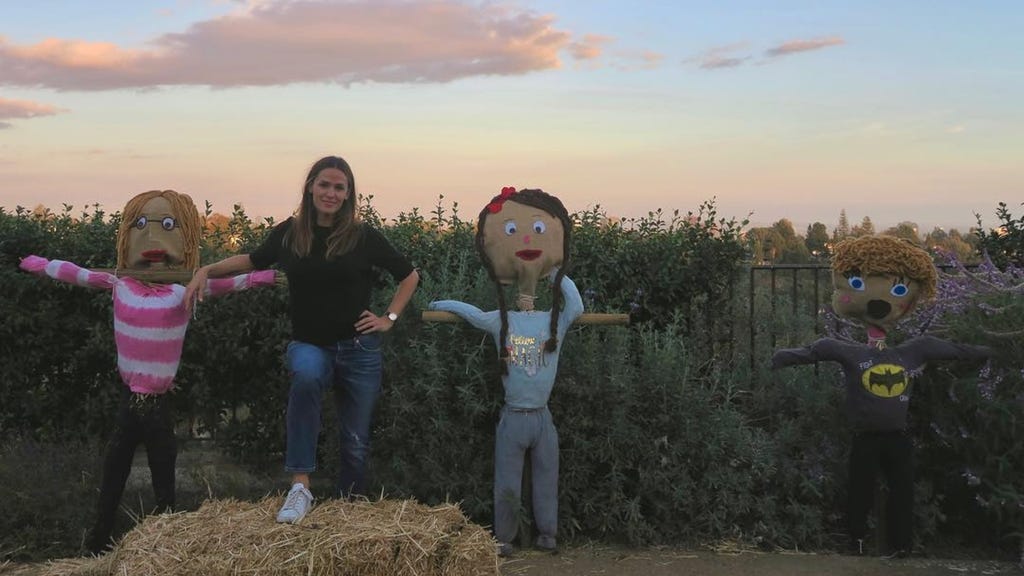 While many celebs were posting photos of their kids in costume, Garner went one step further and made scarecrow versions of her three children -- Violet, Seraphina and Samuel.