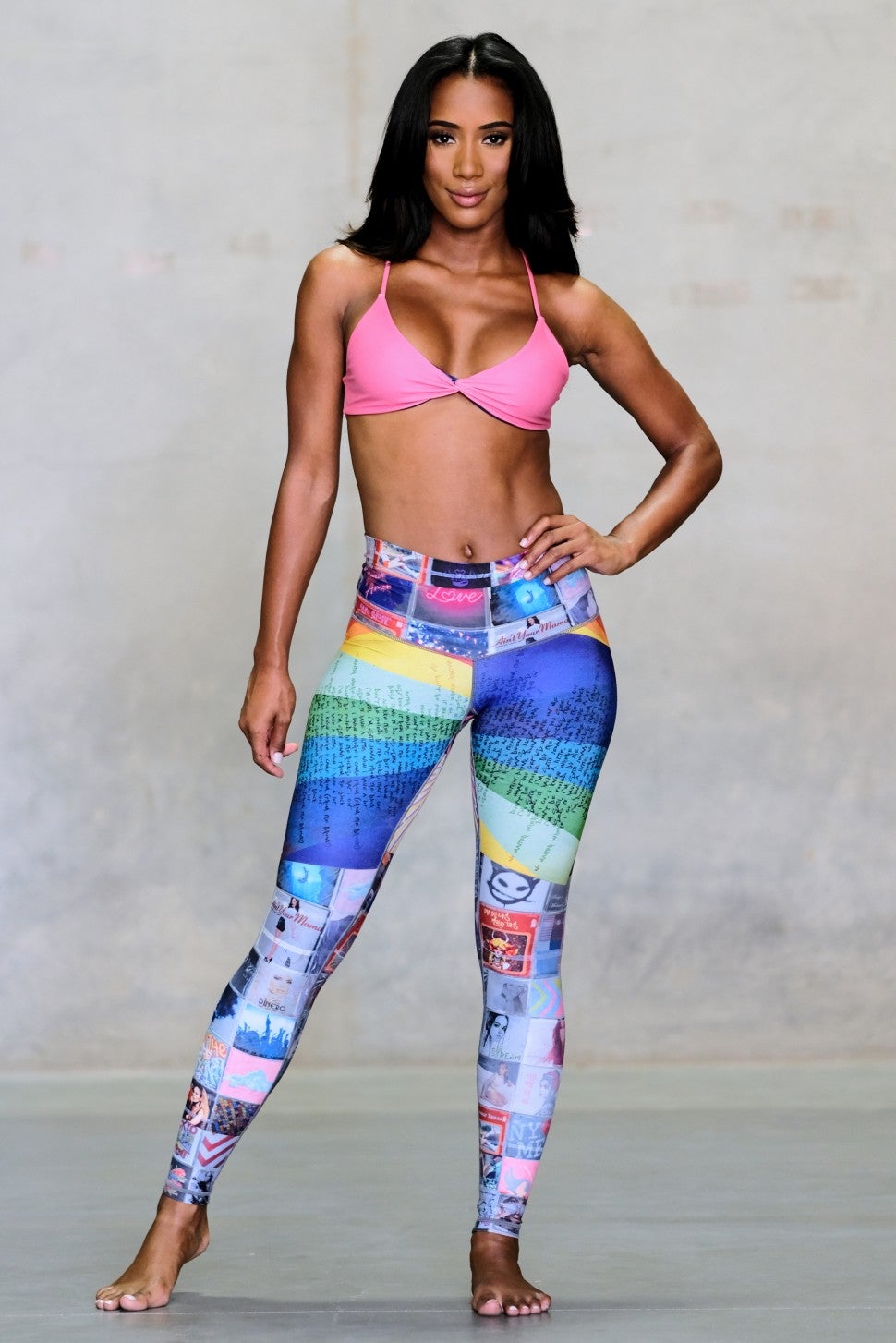 Inspired by the 49-year-old singer's music, each legging was designed with a personal touch. The bold, multicolored Vanguard legging features the star's iconic album covers and lyrics, while the Amor Amor Amor design -- named after her single -- boasts family vacation snaps and personal handwritten notes in Spanish to encapsulate sultry, sun-soaked days spent in Miami.