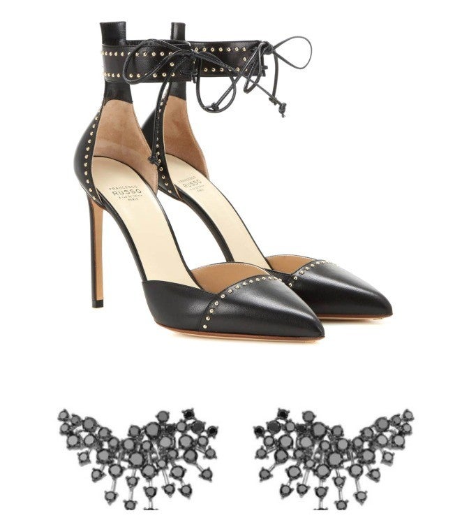 Robbie looked ravishing in a plunging black velvet Altuzarra dress with floral and beaded embellishment. The blonde bombshell added a touch of elegance with a pale pink feathered Prada jacket from the Fall 2017 collection worth $5,240, and accessorized with Sara Weinstock bracelets.