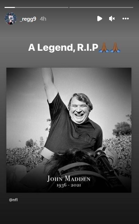 "John called our first Super Bowl," Brady wrote on the tribute he posted to his Instagram story. "He was always so good to me. RIP to a legend of our game. My condolences and love to the Madden family."