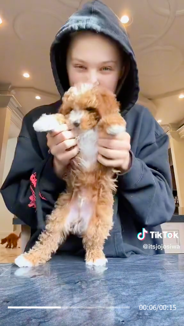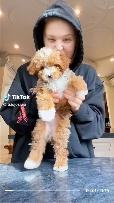 What JoJo Siwa thought was a cute puppy video turned into a much funnier moment. The 19-year-old YouTuber took to TikTok to share a throwback clip from when she first got her puppy, moving the cute pup around to the soundtrack of The Black Eyed Peas' hit, "Boom Boom Pow."