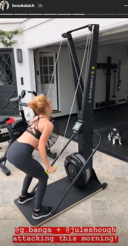 All jokes aside, it appears the lovebirds "put in some work" with conditioning and front squat workouts after all, according to a series of videos and pics shared by Laich and Hough. The pair were joined by one of their close pals, G Banga, taking turns using the various equipment.
