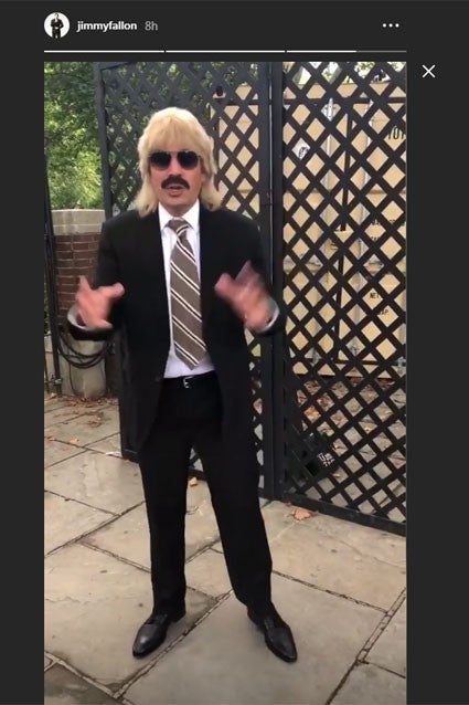 In a photo snapped by one onlooker, Bieber is seen in an ill-fitting brown wig, mustache, sunglasses and a suit jacket and tie that he paired with an untucked button-down shirt. As for Fallon, he's sporting a longer blonde wig as well as a mustache, sunglasses and a suit jacket and tie.