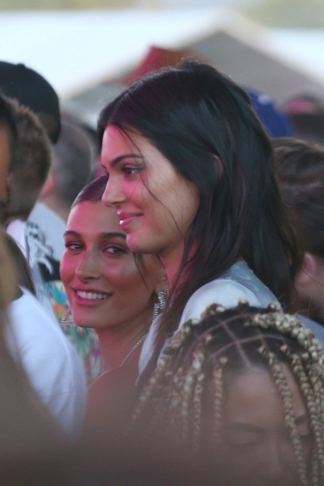 And so far, Kendall seems to be having a blast at the three-day music festival in Indio, California. On Friday, she was spotted in the crowd at Kacey Musgraves' sunset set alongside Hailey, who was rockin' a diamond-encrusted "Bieber" necklace. The two were also spotted at Jaden Smith's show on Saturday, where interestingly enough, Jordyn Woods made an appearance following her falling out with the Kardashian-Jenner clan.